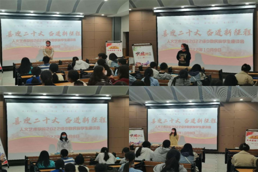 为迎接党的二十大胜利召开,促进少数民族学生文化习俗交流,帮助少数民族学生成长成才,10月9日下午,beat365在线唯一官网在教育实训中心101举办少数民族学生座谈会。学院党总支书记韩飞、22级全体辅导员和来自蒙古族、满族、土家族、回族等16个少数民族的93名新生进行面对面深度交流,会议由韩飞主持。