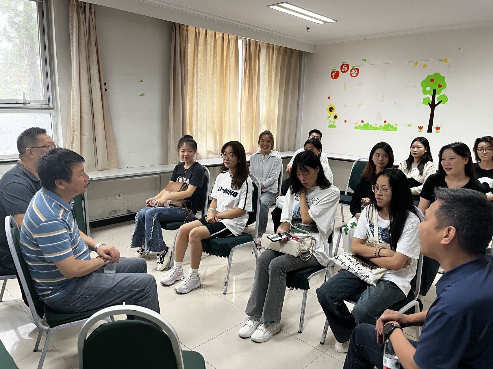 韩飞一行首先与企业进行了座谈,参观了学生宿舍和工作环境,深入了解北京明健体育发展有限公司现状和未来发展趋势。座谈会上,韩飞表达了对实习单位的感谢,同时要求新入职的同学们要认真工作,不断提升工作能力和综合素质。企业负责人对beat365官网办学情况给予高度评价,对beat365官网学生的到来表示欢迎。双方就人才培养课程与知识体系结构方面进行了深入交流,对将来能够长期紧密合作表示期盼。