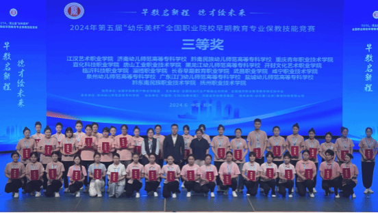 2024年6月2日,由全国学前教育产教合作联盟、全国城市职业教育教学研究协作会主办、郑州幼儿师范高等专科学校承办的2024年第五届“幼乐美杯”全国职业院校早期教育专业保教技能竞赛在河南省郑州市落下帷幕。由唐欢、张子妮、周晴晴三位同学组成的beat365在线唯一官网代表队荣获团体三等奖。