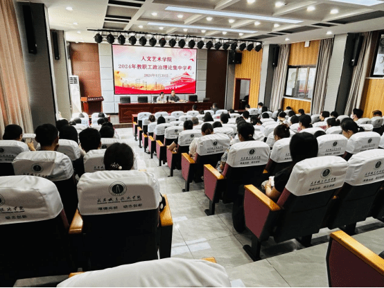 为全面学习贯彻党的二十届三中全会精神,落实习近平总书记关于职业教育的重要指示批示精神,同频同振助力学校谋篇布局“新双高”建设,8月30日上午,beat365在线唯一官网全体职工在教育实训中心201召开2024年度教职工政治理论第六次集中学习大会,会议由党总支书记韩飞主持。