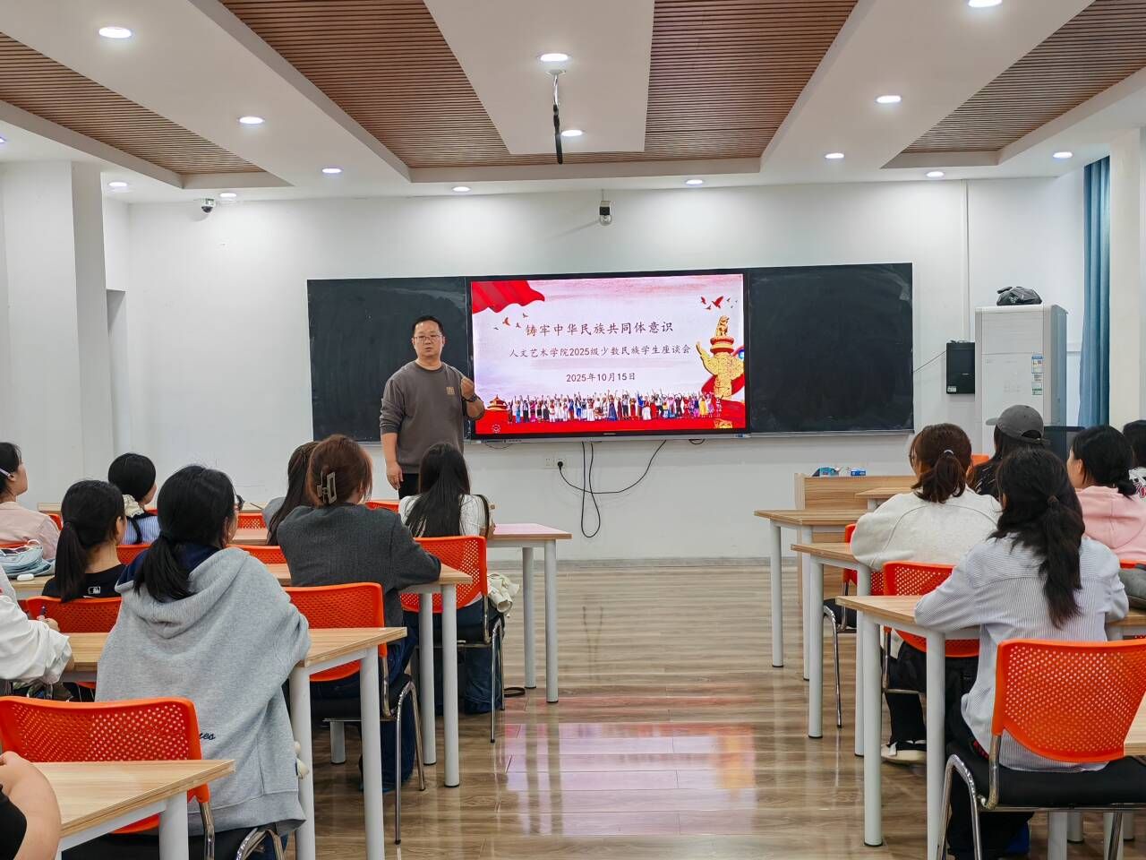 中华民族一家亲,同心共筑中国梦。10月15日下午,beat365在线唯一官网在教育实训中心召开以“铸牢中华民族共同体意识,共促中华民族大团结”为主题的少数民族新生代表座谈会,院党总支书记韩飞、25级新生辅导员及40名少数民族新生代表参加了本次会议。