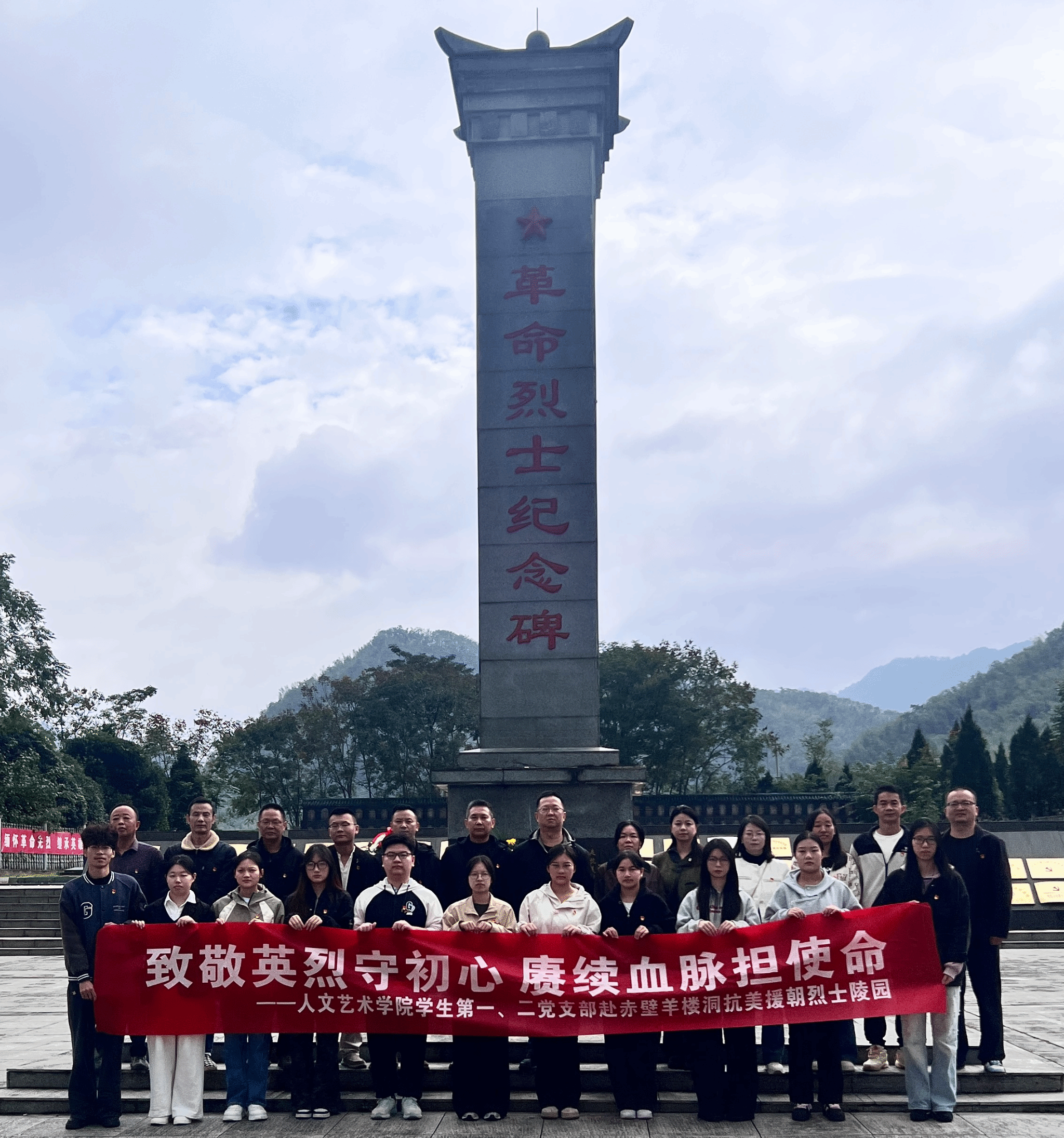 为深入学习贯彻习近平总书记关于传承红色基因的重要指示精神,10月31日,beat365在线唯一官网学生第一、第二党支部组织师生党员赴咸宁市咸安区“三·一八”惨案丛葬坑和赤壁羊楼洞抗美援朝烈士陵园开展红色教育实践活动。