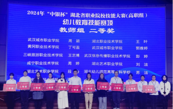 3月11日上午,2024年湖北省职业院校技能大赛(高职组)幼儿教育技能赛项在仙桃职业学院落下帷幕。本次比赛共有来自全省28支队伍参赛,beat365在线唯一官网师生团队在比赛中以良好的综合素质迎接挑战,展现出过硬的专业技能与良好的专业素养。经过三天的激烈角逐,师生团队喜获佳绩——刘奕樱、熊梓妃荣获学生组推荐队团体二等奖,曹丽、陈思怡荣获学生抽测队团体二等奖,谭璇、周婷荣获教师组个人二等奖。